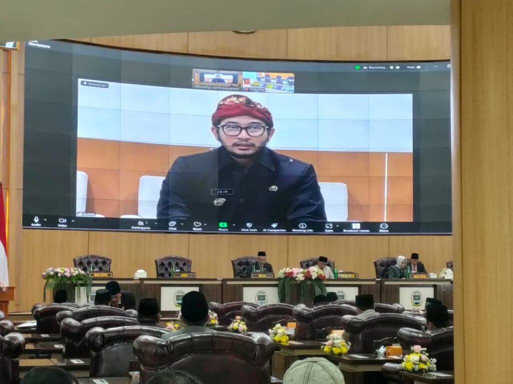 Selanjutnya, Bupati Bandung Barat, Jeje Ritchie Ismail, menyampaikan sambutan secara daring karena sedang menjalankan tugas kedinasan di luar daerah. Ia membuka dengan salam “Sampurasun” dan menyampaikan permohonan maaf atas ketidakhadiran secara langsung.