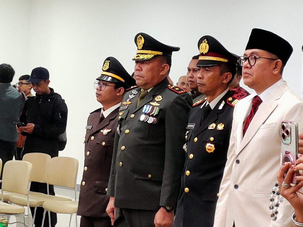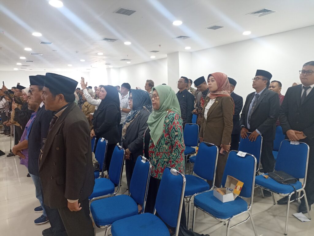 Setelah pembukaan, hadirin berdiri bersama untuk menyanyikan lagu kebangsaan Indonesia Raya sebagai wujud penghormatan terhadap semangat persatuan bangsa. Suasana ruang sidang terasa khidmat dan penuh penghargaan terhadap nilai-nilai demokrasi dan pengabdian publik.