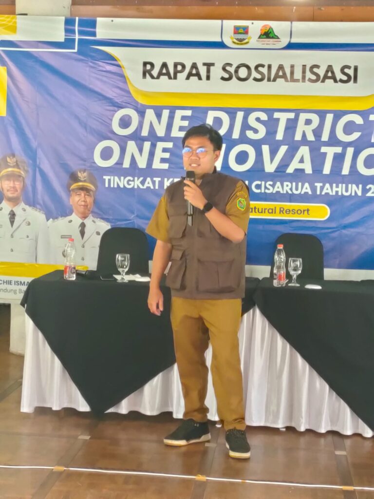 Sesi kedua acara diisi dengan pemaparan materi oleh narasumber Yoda dan Andika, yang memperkenalkan konsep One District Innovation—sebuah pendekatan pembangunan kecamatan yang memanfaatkan teknologi digital secara maksimal dalam proses administrasi, pelayanan, dan perencanaan.