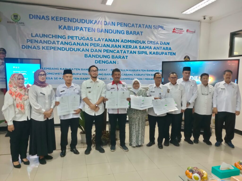 Ngamprah, 7 Januari 2026. Pemerintah Kabupaten Bandung Barat (KBB) resmi meluncurkan Petugas Layanan Administrasi Kependudukan (Adminduk) Desa sekaligus menandatangani perjanjian kerja sama lintas sektor, Selasa (7/1), di Kantor Pelayanan Dinas Kependudukan dan Pencatatan Sipil (Disdukcapil) KBB. Program ini menjadi langkah strategis untuk mendekatkan layanan dasar administrasi kependudukan kepada warga, terutama kelompok rentan yang selama ini menghadapi kendala akses.