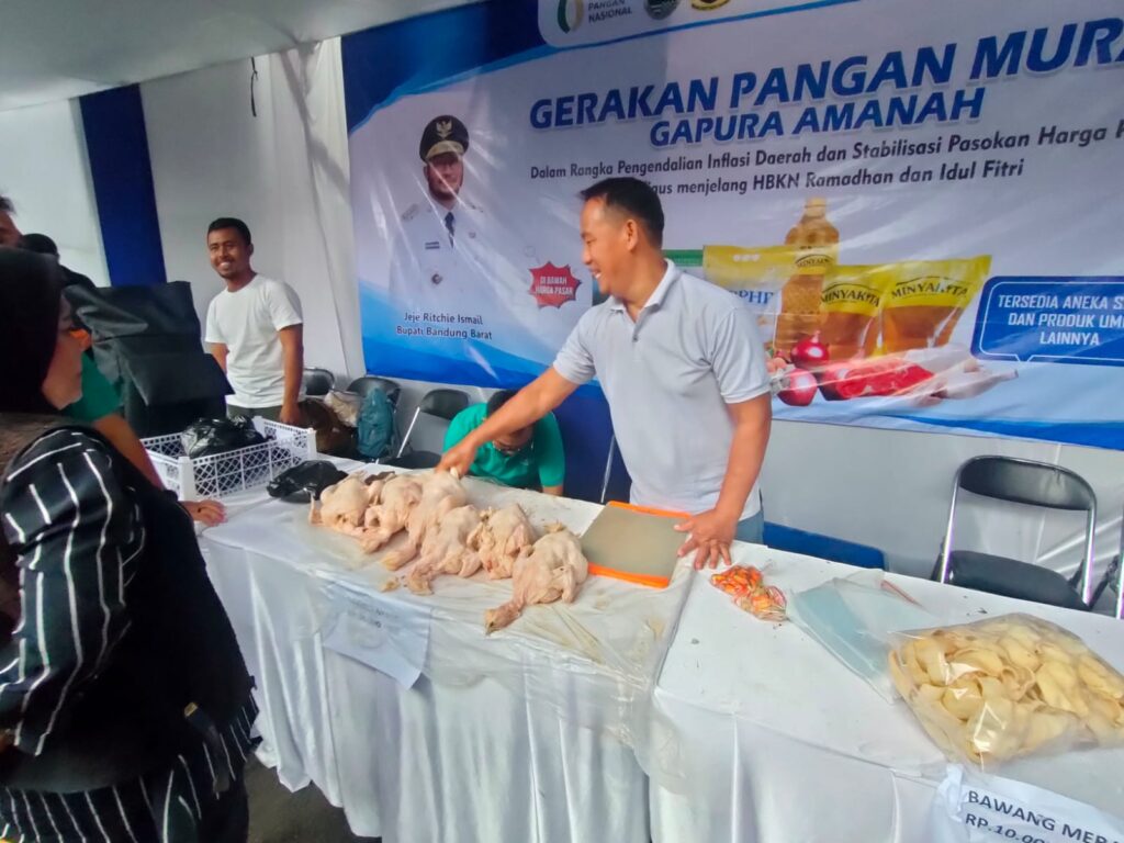 Gerakan pangan murah tersebut merupakan kolaborasi antara Badan Pangan Nasional, Perum Bulog, DKPP Provinsi Jawa Barat, dan DKPP Kabupaten Bandung Barat.