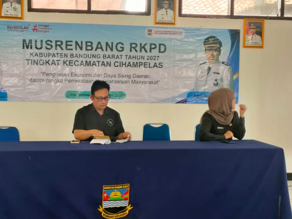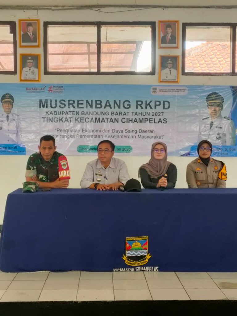 Cihampelas, Kabupaten Bandung Barat, 24 Februari 2026. Pemerintah Kecamatan Cihampelas menggelar Musyawarah Perencanaan Pembangunan (Musrenbang) dalam rangka penyusunan Rencana Kerja Pemerintah Daerah (RKPD) Kabupaten Bandung Barat Tahun 2027 dengan tema “Penguatan Ekonomi dan Daya Saing Daerah dalam rangka Pemerataan Kesejahteraan Masyarakat”, bertempat di Aula Kecamatan Cihampelas.