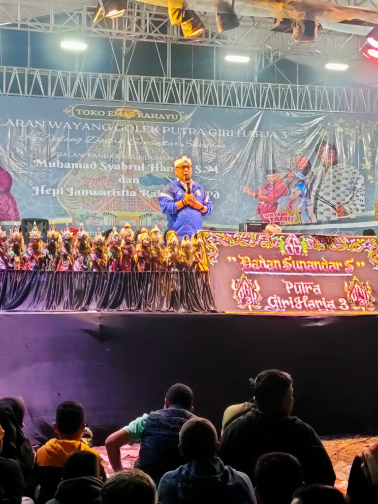 Acara yang dipandu oleh Ki Dalang Dadan Sunandar Sunarya ini bukan sekadar pertunjukan seni biasa. Gelaran kolosal ini merupakan bagian dari syukuran “Unduh Mantu” pernikahan Muhammad Syahrul Hanafi, S.M dan Hepi Janwaristia Rahmat, S.Pd., putra-putri dari keluarga besar pemilik Toko Emas Rahayu. Bapak Haji Aang dan Ibu Hajah Tati.