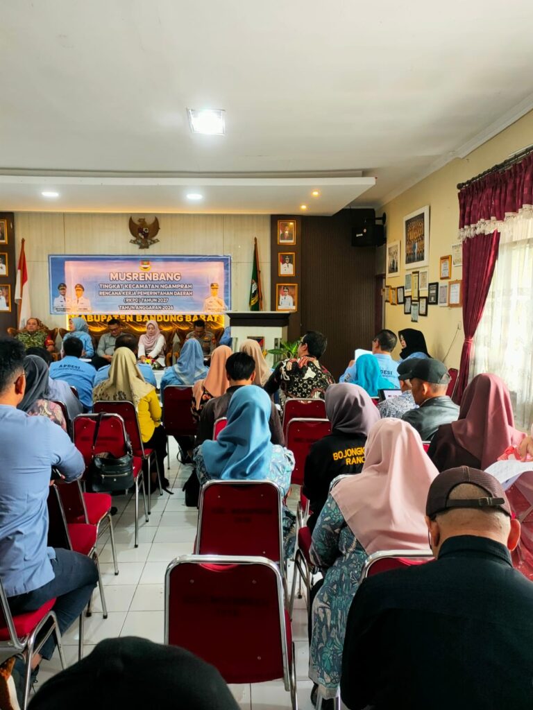 Ngamprah, 27 Februari 2026. Musyawarah Perencanaan Pembangunan (Musrenbang) Tingkat Kecamatan Ngamprah untuk penyusunan Rencana Kerja Pemerintah Daerah (RKPD) Tahun 2027 digelar di Aula Kecamatan Ngamprah, Kabupaten Bandung Barat. Forum tahunan ini mengusung tema Penguatan Ekonomi dan Daya Saing Daerah dalam Rangka Pemerataan Kesejahteraan Masyarakat, dengan latar tahun anggaran 2026.