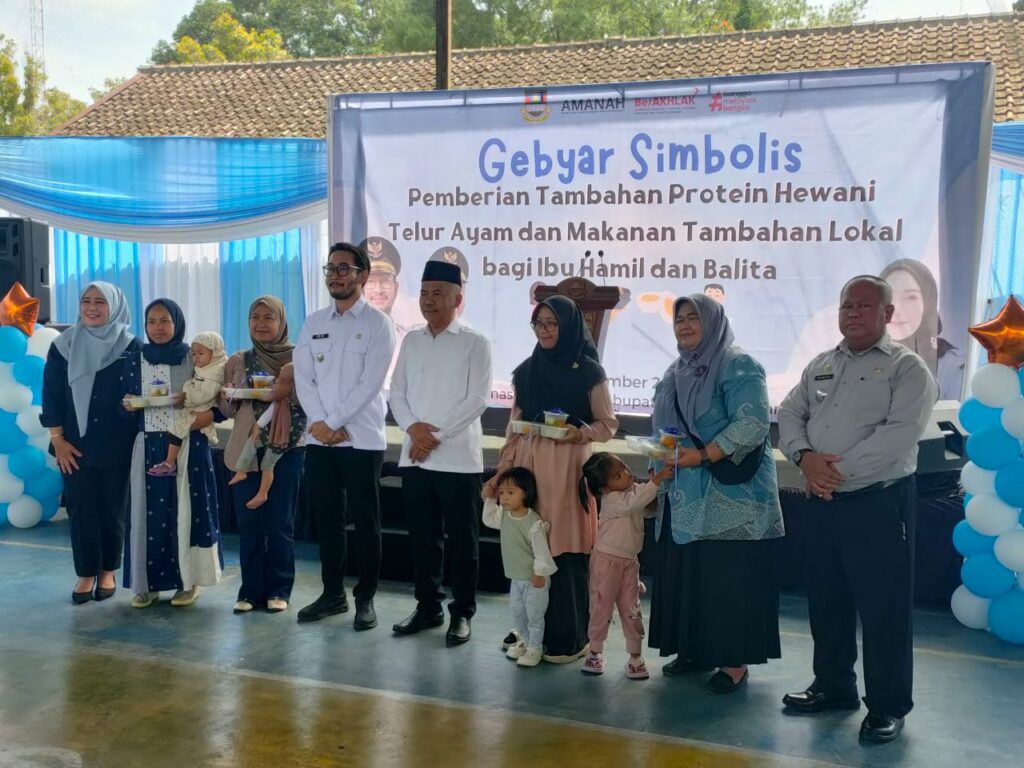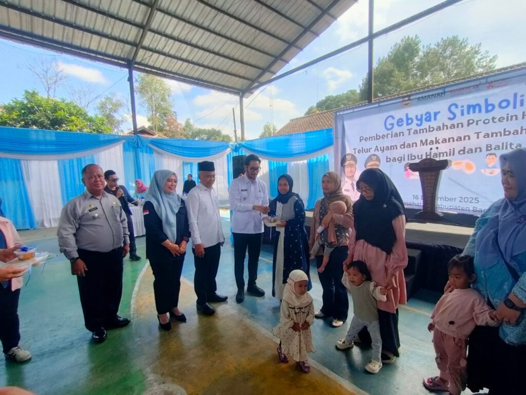 Lembang. 16 Desember 2025. Pemerintah Kabupaten Bandung Barat (KBB) terus memperkuat komitmennya dalam menekan angka stunting melalui program terintegrasi berbasis intervensi gizi dan kolaborasi lintas sektor. Salah satu wujud nyata komitmen tersebut ditandai dengan pelaksanaan Gebyar Simbolis Pemberian Tambahan Protein Hewani Telur Ayam (PELITA BENING) bagi Ibu Hamil dan Pemberian Makanan Tambahan (PMT) Pemulihan bagi Balita, yang digelar di Desa Cikahuripan, Kecamatan Lembang, Kabupaten Bandung Barat, pada 2025.