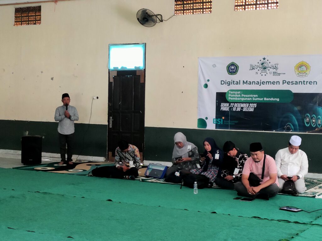Cililin, Bandung Barat. 22 Desember 2025. Upaya mendorong modernisasi tata kelola pondok pesantren terus digalakkan. Kali ini, digitalisasi manajemen pesantren menjadi fokus utama dalam kegiatan yang digelar di Aula Pondok Pesantren Pembangunan Sumur Bandung, Kecamatan Cililin, Kabupaten Bandung Barat, Senin (22/12/2025). Kegiatan ini merupakan bagian dari inisiatif Pengurus Besar Nahdlatul Ulama (PBNU) melalui RMI NU, bekerja sama dengan Forum Pondok Pesantren (FPP) Kecamatan Cililin dan Bank Syariah Indonesia (BSI).