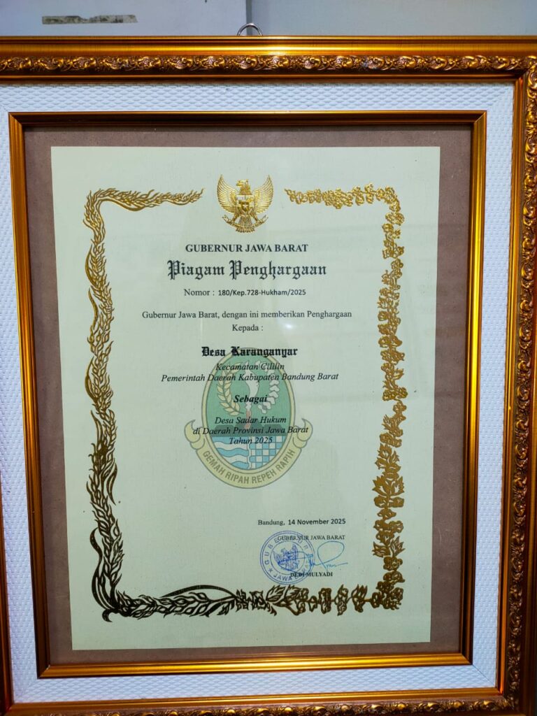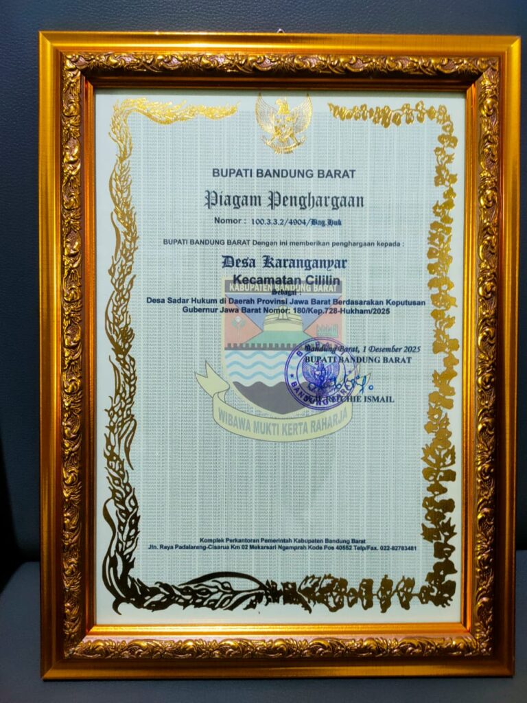 “Ini menjadi bentuk pengakuan atas kesadaran hukum Desa Karanganyar, meskipun berada di ujung Kecamatan Cililin bagian paling barat. Desa kami tidak termasuk desa yang melawan hukum dan selalu taat terhadap undang-undang serta peraturan pemerintah,” ujarnya.